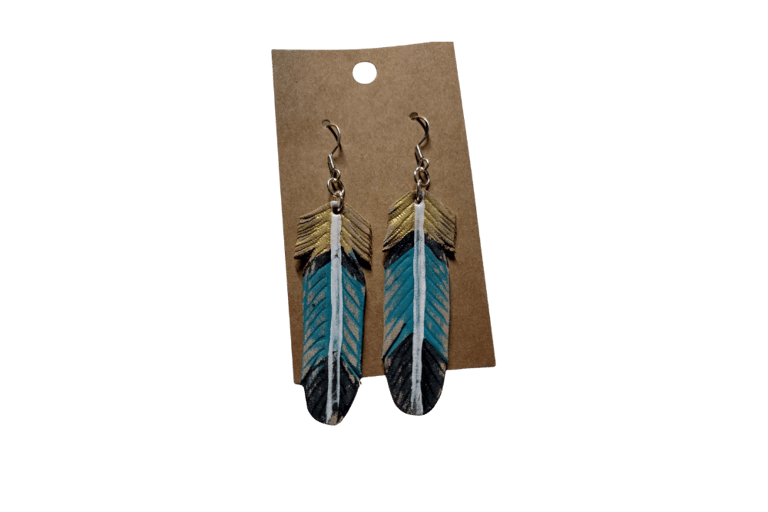 Please note that leather and feather earrings are lightweight but delicate by nature. We recommend displaying them away from direct sunlight and humidity to preserve color and form.