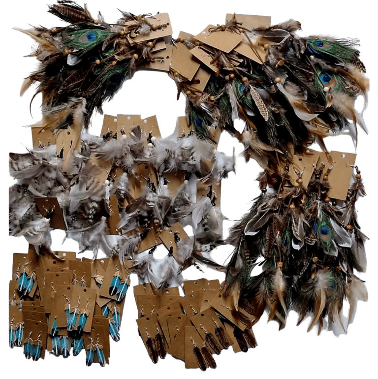 Feathers are responsibly sourced and ethically gathered. Because of the natural materials used, no two pairs are exactly alike — making each piece uniquely its own.